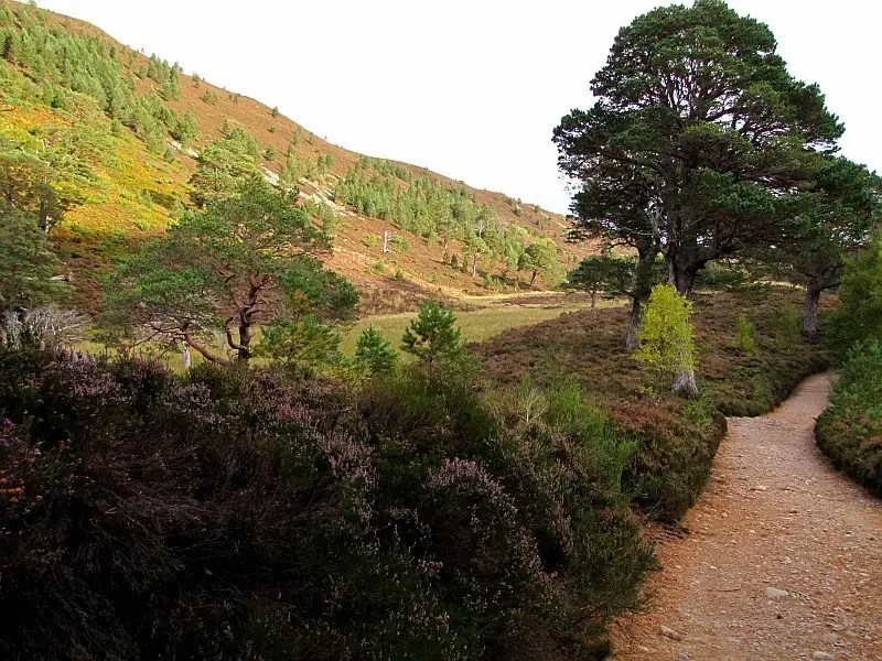 Stamtąd kontynuowaliśmy wzdłuż lasu, a raczej tego co z niego zostało (oprócz rzedkich modrzewi, mnóstwo powyrywanych z korzeniami pni); w kierunku Glen Geldie. Kiedy z oddali zaczyna majaczyć chatka (dawny cottage który niekiedy określa się jako Geldie Burn Bothy), wiadomo już że w niej- znaczy, dolinie – jesteśmy.