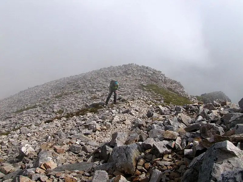 Tym razem coś nam się pomerdało i nie poszliśmy wzdłuż krawędzi klifów podziwiać leżący w dole park skalny, a jakimś cudem zabrnęliśmy na najwyższy punkt wzniesienia, Meall na Suiramach (543m n.p.m.). Z kolei wracając również nie weszliśmy pomiędzy skalne formacje a obeszliśmy je dołem – miało to o tyle sens że w parku skalnym zeszło by nam o wiele dłużej. No ale fakty są takie że najciekawszą część opuściliśmy.